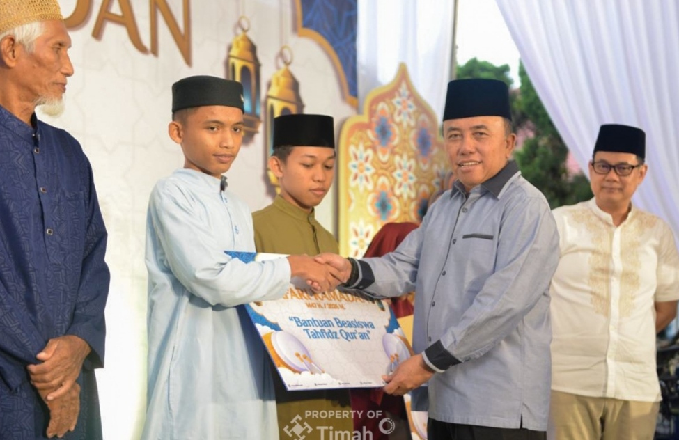 Dalam Safari Ramadan ini, PT TIMAH juga menyerahkan bantuan beasiswa pendidikan bagi para tahfiz Al-Qur’an di wilayah Operasional Perusahaan, sebagai bentuk dukungan terhadap generasi muda yang menekuni pendidikan keagamaan.