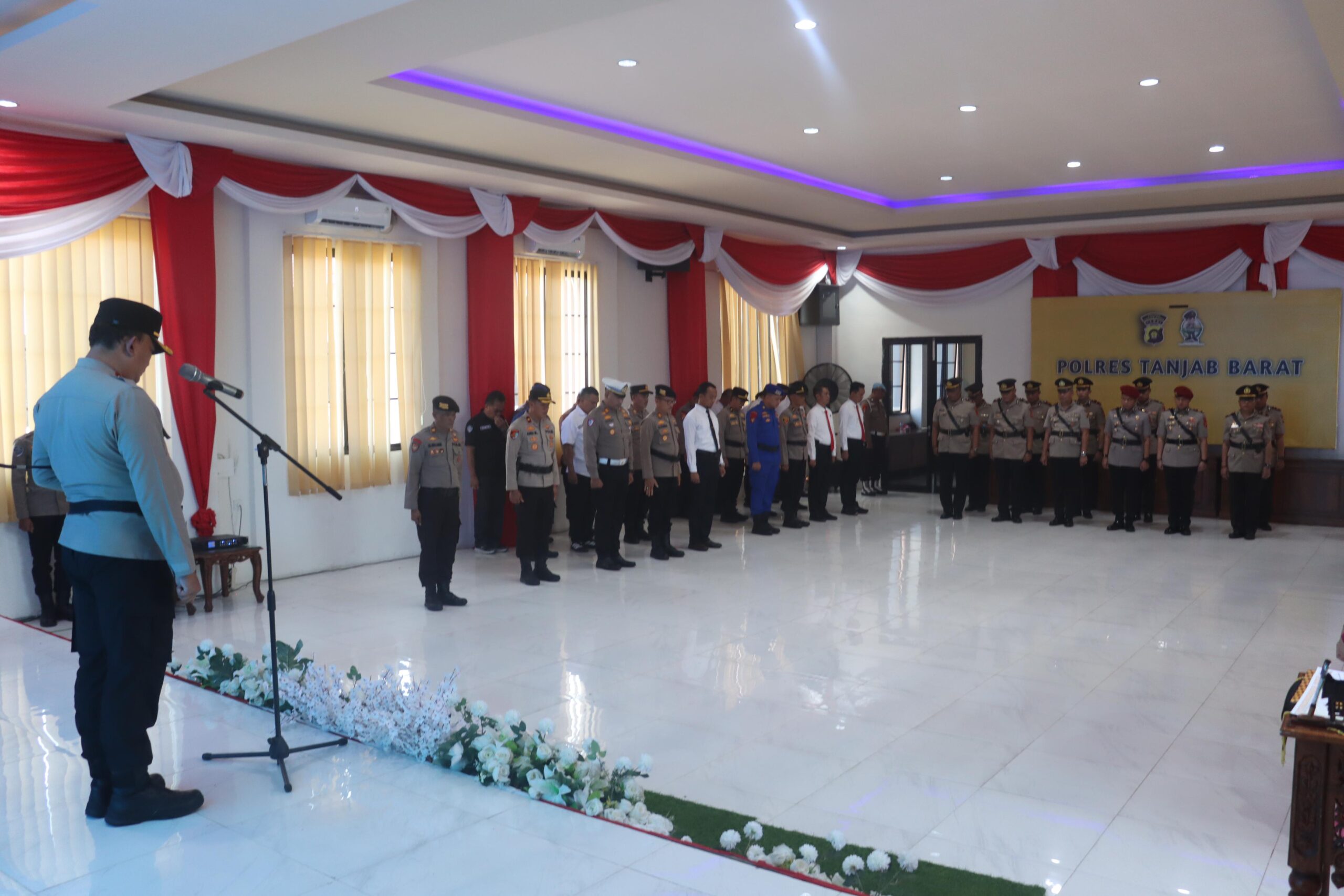 Upacara yang berlangsung khidmat ini dipimpin langsung oleh Kapolres Tanjab Barat, AKBP M. Kuswicaksono, S.I.K., M.H., bertempat di Ruang Rekonfu Mapolres, Kamis (02/04/2026).