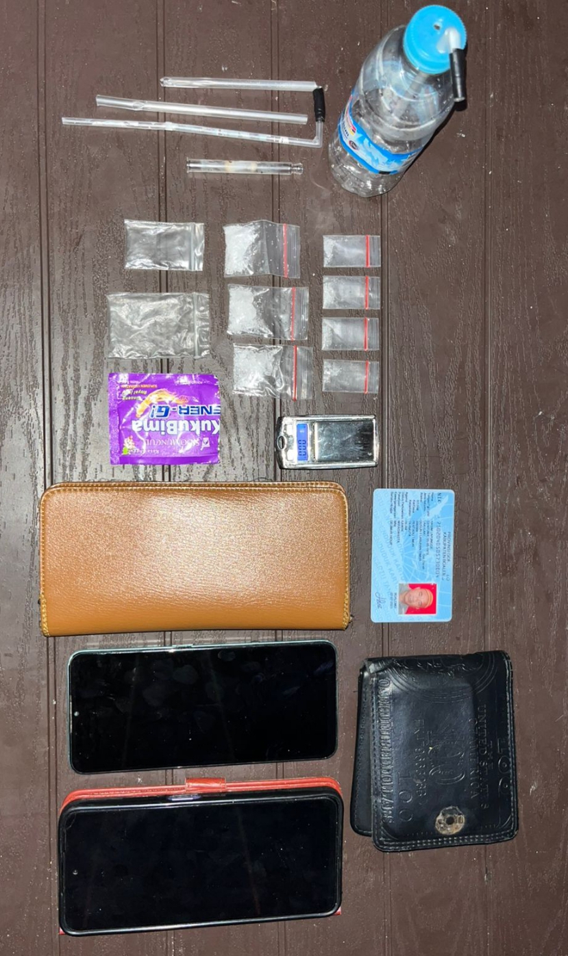 Selain itu turut dibawa alat hisab bong, sedotan plastik, kaca pirex, timbangan digital, 2 buah dompet, minuman stamina, dan 2 buah handphone.