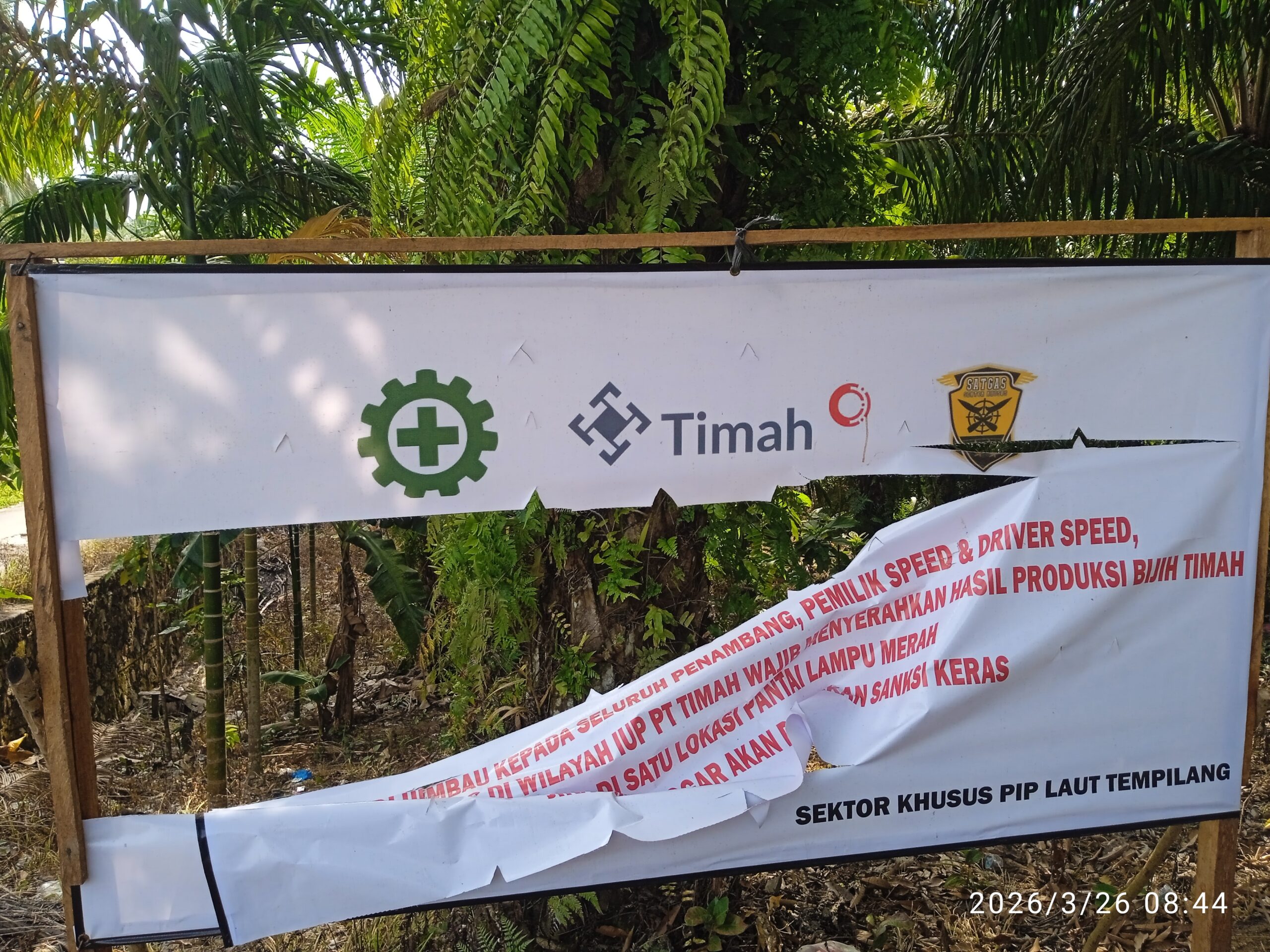 “DEMI KESELAMATAN KAMI HIMBAU AKTIVITAS PENAMBANGAN DAN PONTON SELAM DILARANG BEROPERASI DI WILAYAH IZIN USAHA PERTAMBANGAN PT TIMAH TBK”
