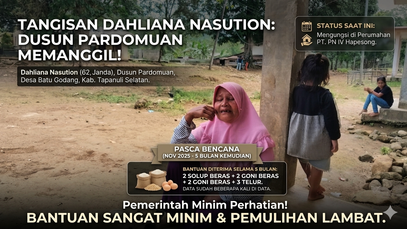 Cakrawalanational.news-Tapsel, Lima bulan setelah bencana tanah longsor melanda Kecamatan Angkola Sangkunur pada November 2025, penderitaan warga terdampak belum juga berakhir. Sejumlah korban masih hidup dalam ketidakpastian tanpa kejelasan bantuan dan pemulihan yang dijanjikan.