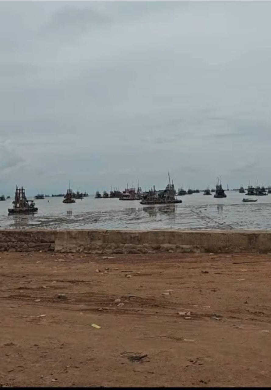 Aktivitas pengumpulan Ponton Isap Produksi (PIP) di kawanan pesisir lampu merah Desa Benteng Kota, Selasa (28/4/2026)